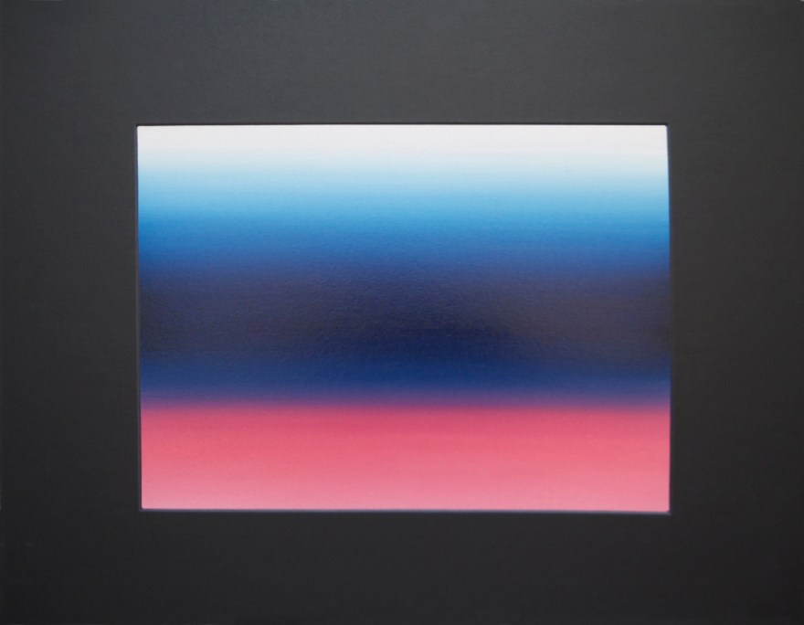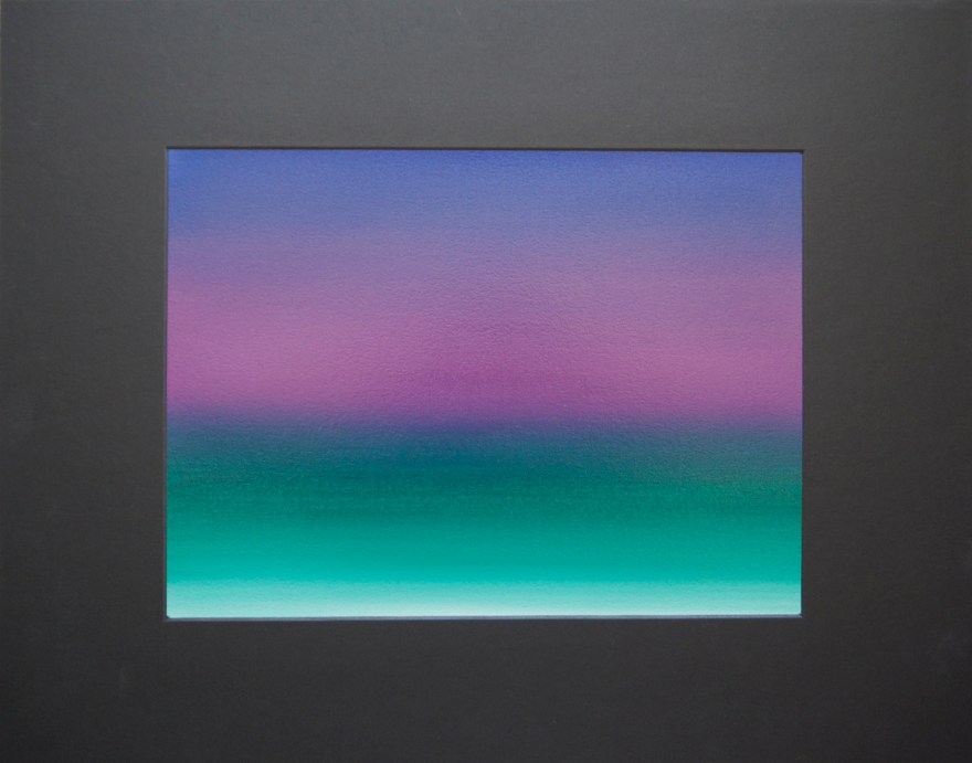 The scientific phenomenon Aurora Borealis can be looked at from a spiritual—or even sacred or poetic—perspective, given the ether’s association with myth and legend. Chemistry becomes poetic through the perceptible vibration of the elements as they form harmonies of natural colors. These sets of molecular colors and their correspondence to Mendeleev’s table of elements, followed by a geographical location, guided the artist’s titling of the work in this series. (2016)