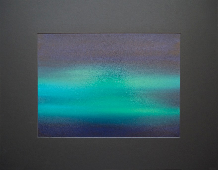 Le phénomène scientifique des aurores polaires observables dans l’Ether, peut être perçu avec un regard plus spirituel, voir même avec une dimension sacrée et poétique, puisqu’associé anciennement à des nombreux mythes et légendes. La chimie devient alors poésie par la vibration perceptible des éléments, formant des harmonies de couleurs. Ces jeux de nuances moléculaires et leur correspondance aux éléments de la table de Mendeleïev, suivis d’un localisation géographique, définissent l’origine des titres des œuvres de cette série. (2017)