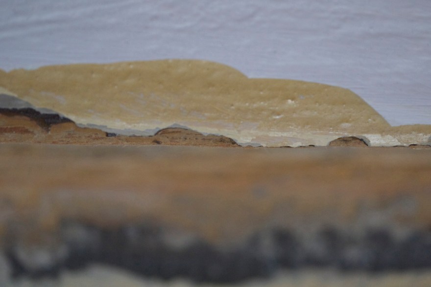 展覧会タイトルのSulpha Terraとは、”硫黄の地”という意味のラテン語で、硫気孔として知られているものです。それは火山から発出されるガス、噴気された硫黄やその沈殿物を特徴とする、大地からの表出物を指します。これらは、硫黄塩とあいまって、黄土、黄、赤などの色合いをつけて、地表を覆います。同時に、その地表は蒸気質の大気に包まれて、混沌とした風景へと移調していきます。